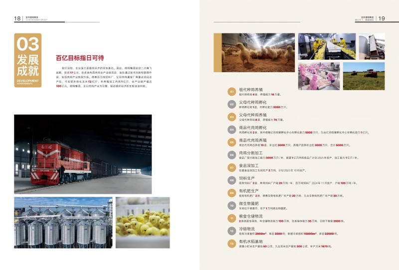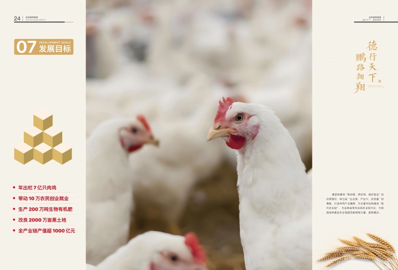 德翔集團(tuán)秉持“種好糧、養(yǎng)好雞、做好食品”的經(jīng)營(yíng)理念,遵循綠色循環(huán)、產(chǎn)業(yè)融合、無(wú)抗高質(zhì)量、延鏈高效、聯(lián)農(nóng)帶農(nóng)的發(fā)展原則,以肉雞產(chǎn)業(yè)為主體,以吉林德翔科創(chuàng)中心、東北亞禽業(yè)交易中心為兩翼,打造“一體兩翼”格局,擴(kuò)大產(chǎn)業(yè)規(guī)模,補(bǔ)齊技術(shù)創(chuàng)新和交易定價(jià)等方面的短板,筑牢發(fā)展基石。未來(lái)3~5年,計(jì)劃投資50億元以上,在德惠、九臺(tái)、江源、中韓(長(zhǎng)春)國(guó)際合作示范區(qū)等地重點(diǎn)布局,項(xiàng)目建成后,可新增就業(yè)崗位7000余個(gè),間接帶動(dòng)糧食物流、雞舍消毒防疫、抓雞隊(duì)、毛雞運(yùn)輸、雛雞運(yùn)輸、冷鏈物流等轉(zhuǎn)移就業(yè)10000余人,人均年增收6萬(wàn)元以上。使集團(tuán)進(jìn)入百億級(jí)農(nóng)業(yè)產(chǎn)業(yè)化龍頭企業(yè)行列,打造吉林省農(nóng)業(yè)綠色循環(huán)高質(zhì)量發(fā)展的樣板、帶領(lǐng)農(nóng)民工返鄉(xiāng)創(chuàng)業(yè)致富的領(lǐng)頭羊,為德惠市創(chuàng)建國(guó)家肉雞現(xiàn)代農(nóng)業(yè)產(chǎn)業(yè)園、吉林省創(chuàng)建國(guó)家肉雞優(yōu)勢(shì)特色產(chǎn)業(yè)集群做好準(zhǔn)備,引領(lǐng)吉林省畜牧業(yè)高質(zhì)量發(fā)展和鄉(xiāng)村產(chǎn)業(yè)振興。