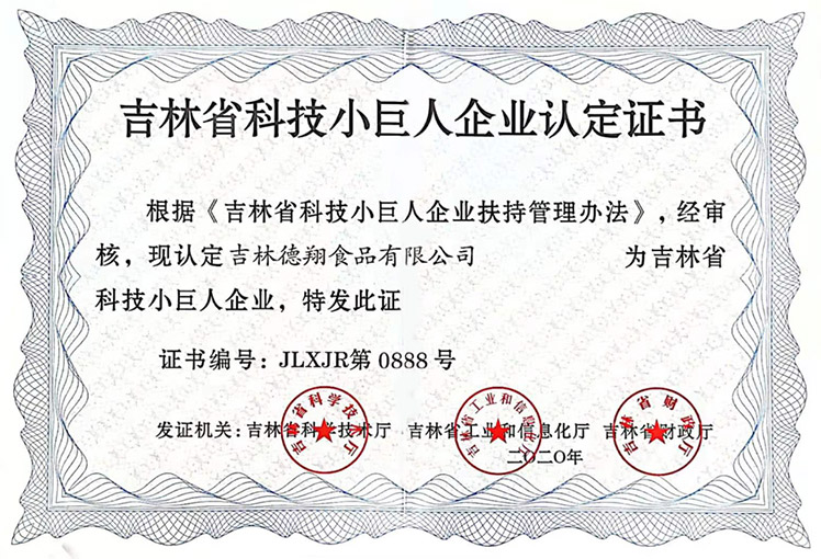 <吉林省科技小巨人企業(yè)認(rèn)定證書>