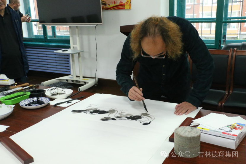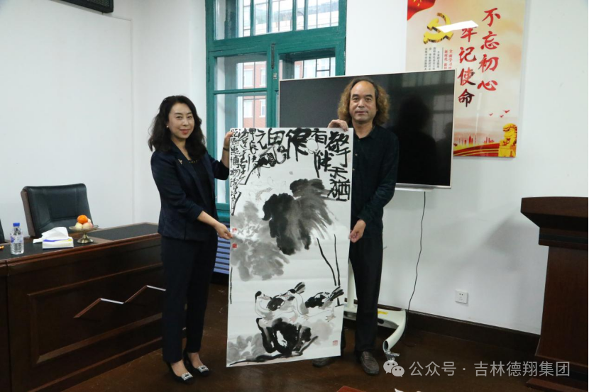 參觀結(jié)束后,王學(xué)俊為德惠市博物館現(xiàn)場創(chuàng)作并贈送作品《清高圖》。