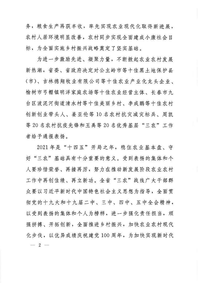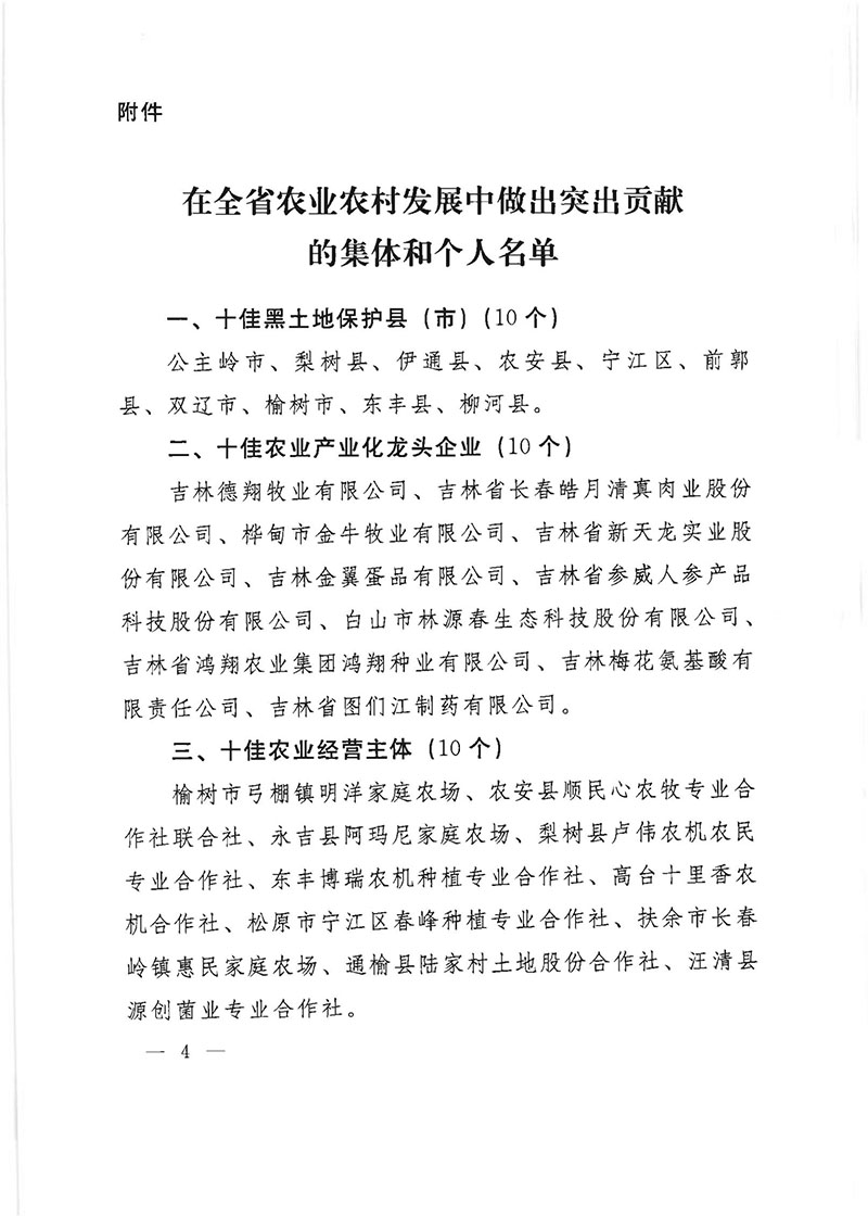 吉林德翔牧業(yè)有限公司榮獲“十佳農(nóng)業(yè)產(chǎn)業(yè)化龍頭企業(yè)”;