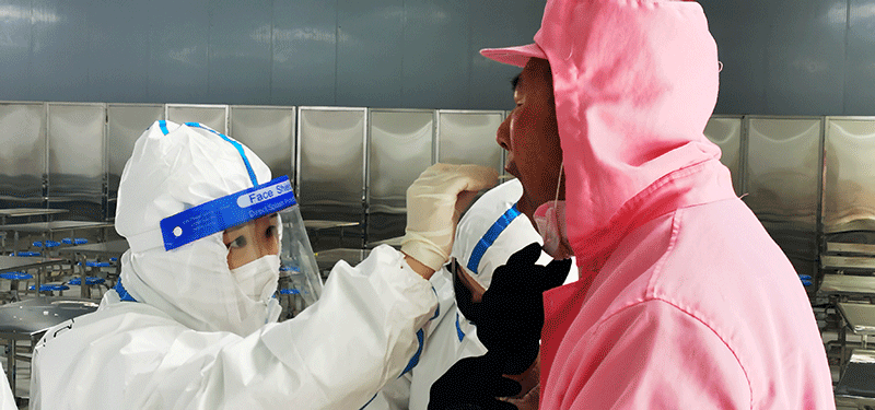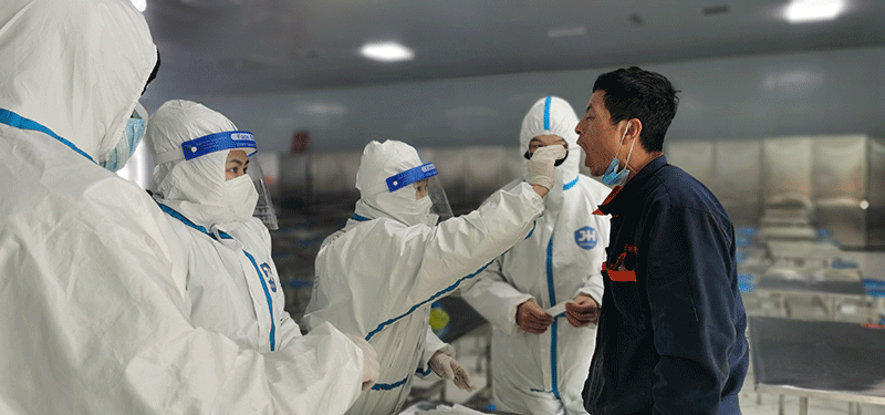 全面掌握每日人員排查情況,認(rèn)真登記、掃碼、測溫、消毒,不能有遺漏,全體員工必須全程佩戴口罩,不聚集,勤洗手、勤通風(fēng),食堂取餐打飯過程必須全程佩戴口罩,外來車輛消毒、司機(jī)不允許下車。
