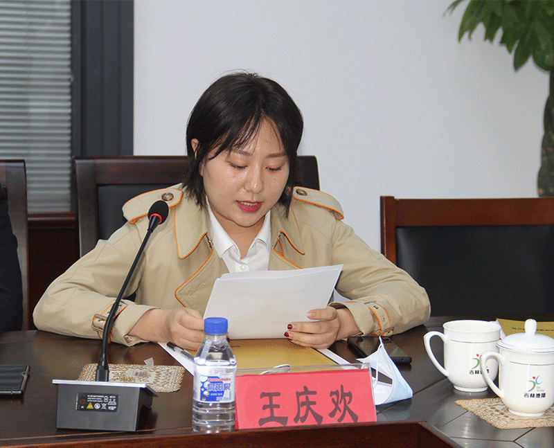 吉林德翔集團(tuán)公司工會主席、吉林德翔食品有限公司法人、董事長王慶歡宣讀相關(guān)文件。